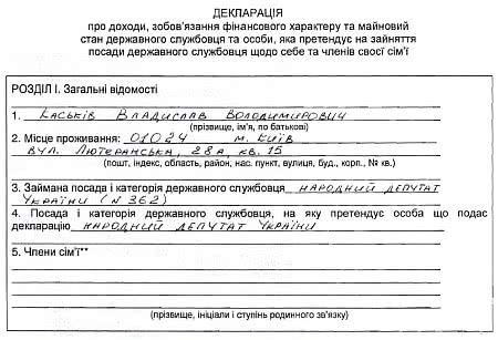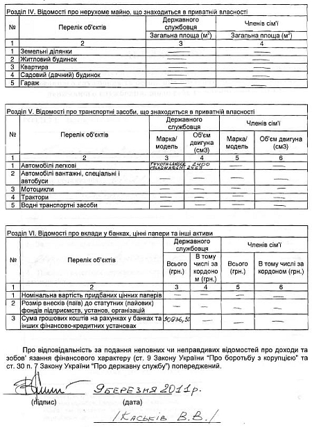 Дохід і власність членів сім`ї Каськів не задекларував.