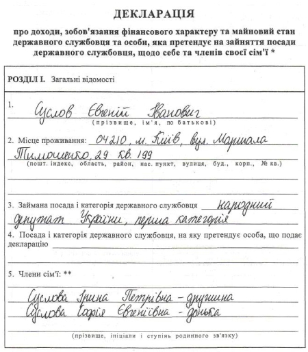 Про це йдеться в його декларації, яка є в розпорядженні "Української правди".