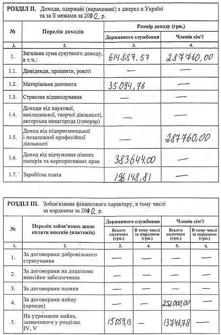 Зокрема, депутат отримав 383,64 тисячі гривень в якості доходу від відчуження цінних паперів та корпоративних прав, більше 196 тисяч гривень - заробітної плати і 35 тисяч гривень - матеріальної допомоги.