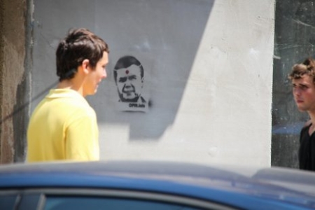 У Львові невідомі розмалювали стіни в центральній частині міста зображенням чоловіка, схожого на президента Віктора Януковича, з простреленою головою.