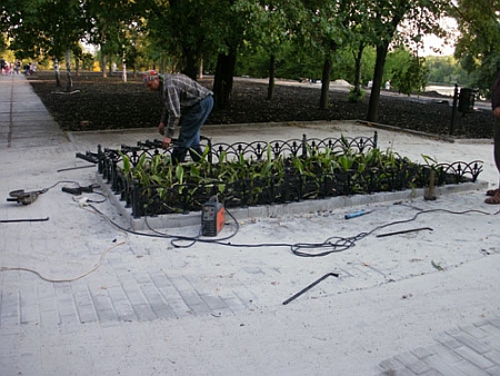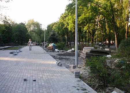 Зокрема, вони знімають стару плитку, поспіхом кладуть нову, встановлюють нові лавочки та паркани, розбивають нові клумби та дитячі майданчики.