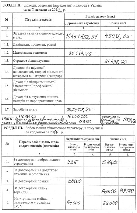 16 мільйонів гривень представник президента отримав у позику.