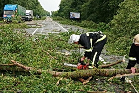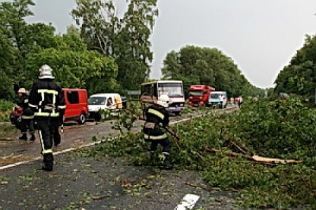 У Тернопільській області потужний вітер повикорчовував дерева та завалив ними сім кілометрів автостради державного значення Тернопіль-Львів.