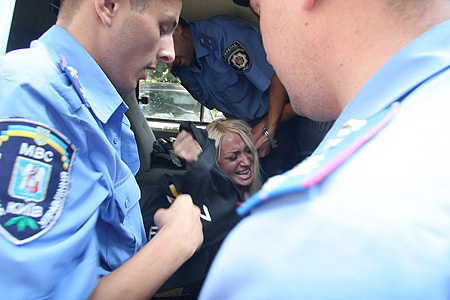 Міліція затримала активістку FEMEN Інну Шевченко за акцію протесту під посольством Грузії.