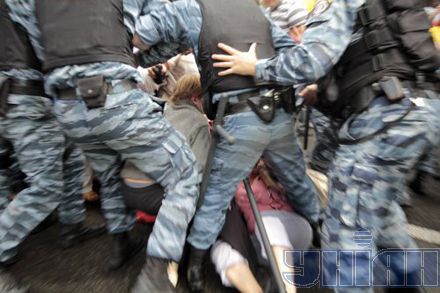 "Через невмілі дії спецпідрозділів міліції під тиском колони частина опозиціонерів виявилися притиснутими до загорожі, в якій знаходились кілька десятків провладних маніфестантів. Загорожа впала і спецпідрозділ кинувся захищати продержавних найманців", - сказано в повідомленні.