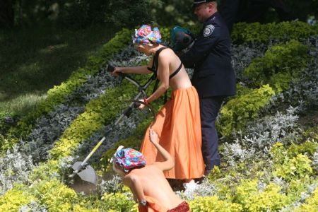 Активістки руху FEMEN практично повністю знищили газон у вигляді тризуба біля Кабінету міністрів.