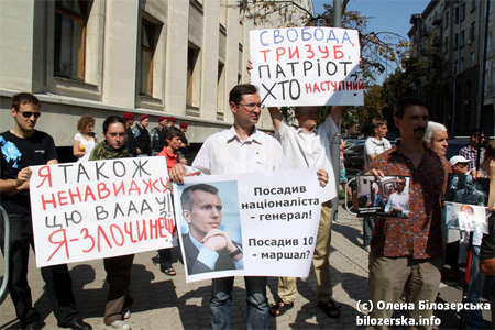 Акція проходила під прапорами Української народної партії, Всеукраїнського об'єднання "Свобода", Конгресу українських націоналістів і інших політичних організацій. У руках в учасників був помічений плакат з портретом глави СБУ Валерія Хорошковського.