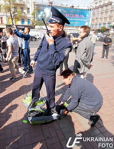 У прес-службі стверджують, що перед цим організатори повідомили працівникам міліції, що акція законна і продемонстрували офіційну заявку на проведення мирної акції на Хрещатику.