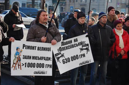 Особливо мітингувальників цікавить вартість ремонту зали міської ради і лавок на станції метро "Олексіївська".