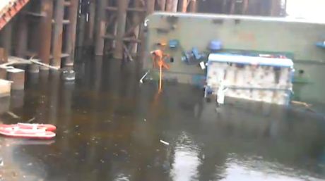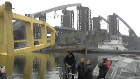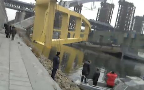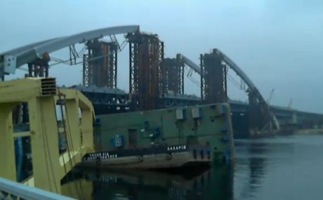 У Києві на будівництві Подільського моста в річку Дніпро завалився кран вантажопідйомністю 680 тонн.