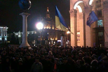 Як повідомляє кореспондент "Української правди", станом на 17:47 зібралось близько трьох сотень прихильників Майдану. Люди вдягнуті в помаранчеву символіку, дехто з них тримає державні прапори, у декого в руках запалені свічки.