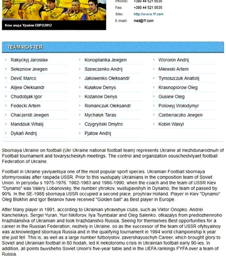 "Sbornaya Ukraine on football (Ukr Ukraine national football team) represents Ukraine at mezhdunarodnыh of Football tournament and tovaryscheskyh meetings. The control and organization osuschestvlyaet football Federation of Ukraine", - так виглядав текст на сайті.