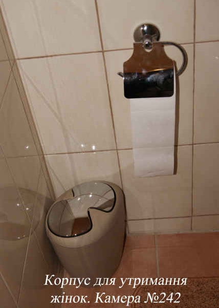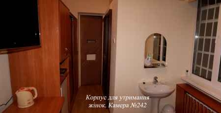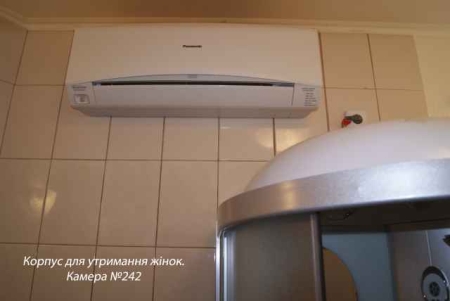 "Наразі в цій камері також належні санітарно-побутові умови. Безпосередньо це приміщення (загальною площею понад 16 кв.м.) обладнано душовою кабіною, сучасним сантехнічним обладнанням, меблями, телевізором, холодильником та кондиціонером", - заявив помічник глави служби.