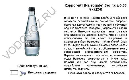 Це - англійська мінеральна вода Harrogate. Упаковка з 24 пляшок негазованої води зі столу Януковича коштує близько 300 грн, газованої - близько 230 грн.