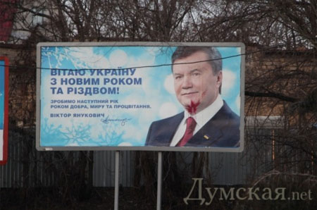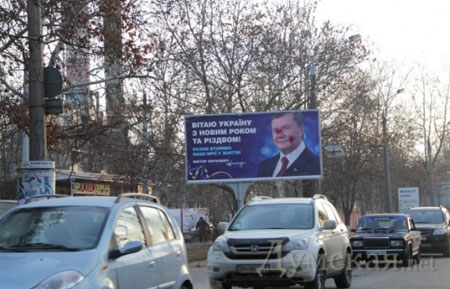 Водночас представник прес-служби облУВС Володимир Шаблієнко заявив, що міліція здійснює перевірку фактів псування білбордів із новорічним привітанням Януковича в Одесі.