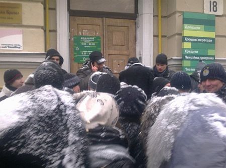 Коли Юля пішла у "Приватбанк" поруч із Софійською площею, натовп людей пішов за нею. Як сказав один учасник мітингу, "щоб не кінулі".