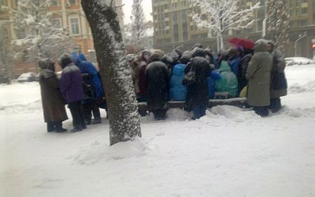 За його словами, близько 14-ї години 22 січня у сквері неподалік від Михайлівського собору, напроти київської міліції, побачив "знайомі обличчя "бабусь-жалібниць", що весь час ходять на мітинг за Юлю". Вони навіть покидали поруч таблички зі словами підтримки Тимошенко.