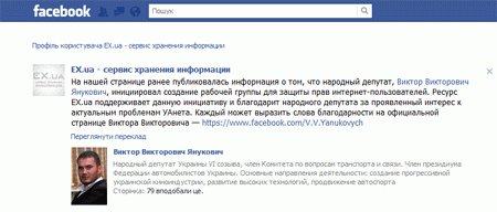 Сервіс Ex.ua закликав своїх користувачів подякувати народному депутату Віктору Януковичу за створення робочої групи для захисту прав інтернет-користувачів.