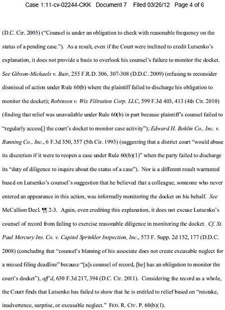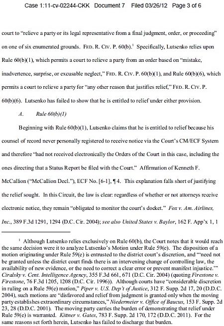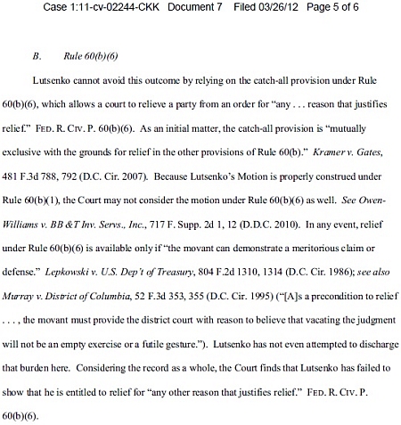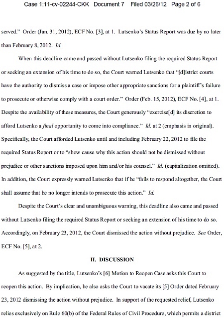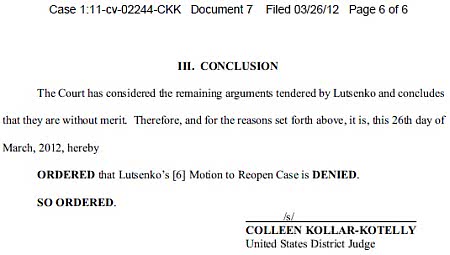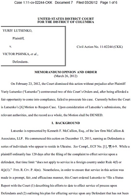 Федеральний суд округу Колумбія у США відмовився відновити провадження за позовом екс-міністра Юрія Луценка до генпрокурора Віктора Пшонки.