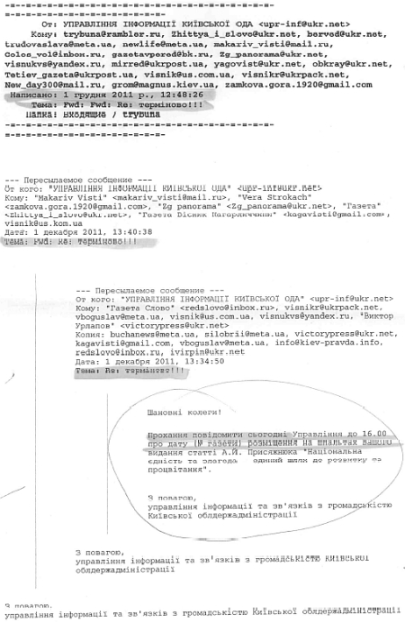 Про це свідчать листи, відправлені з електронної пошти управління на адреси видань, які є у розпорядженні "Української правди".