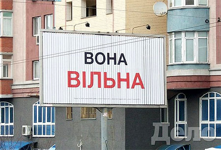 Як відомо, у понеділок у Києві з’явилися білборди "Вона вільна" у стилістиці рекламної кампанії Юлії Тимошенко на президентських виборах "Вона працює".