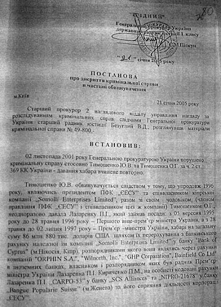 Справи проти Юлії Тимошенко були закриті до того, як вона стала прем’єр-міністром у 2005 році.