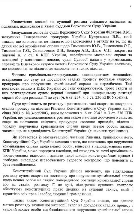 "Окрім того, з достовірних джерел відомо, що зазначена ухвала Верховного суду України була прийнята одноголосно. За неї проголосували 46 із 48 суддів, двоє були відсутні під час голосування", - заявляє "Батьківщина".