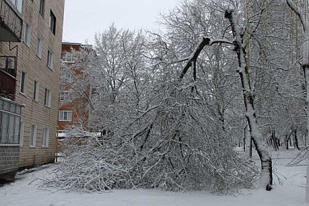 Повалило дерева майже у кожному дворі. На вул. Молодіжній величезна гілка впала на дитмайданчик. На вул. Інститутській гілка впала на поріг магазину. Біля багатоповерхівок ходити небезпечно. З дахів часто летять брили замерзлого снігу з льодом.