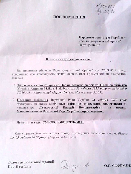 Сам Олександр Єфремов в коментарі "Українській правді" підтвердив існування подібної практики мобілізації депутатів.