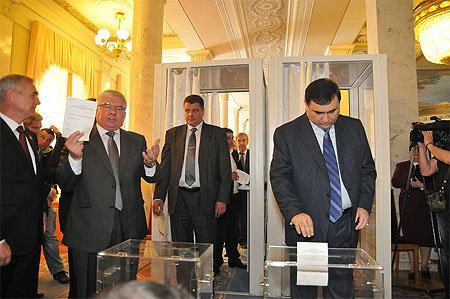 Під час таємного голосування за омбудсмена у Верховній Раді депутати від Партії регіонів показували свої бюлетені Михайлу Чечетову.