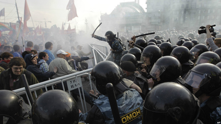 "Співробітники ОМОН діяли жорстко. У хід були пущені гумові кийки, опозиціонери стверджують, що поліція застосувала сльозогінний газ. Поліція оголосила про більш ніж 400 затриманих. Серед постраждалих - близько 20 поліцейських", повідомляє Бі-Бі-Сі.
