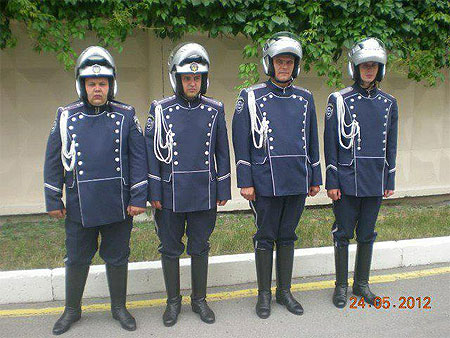 "Перед журналістами вишикувалися 4 мотоцикліста в спеціальному форменому одязі, що був спеціально пошитий для кожного співробітника, в якому вони будуть супроводжувати команди футболістів – учасників Чемпіонату Євро-2012 під час пересувань по місту Харкову", - сказано у повідомленні.