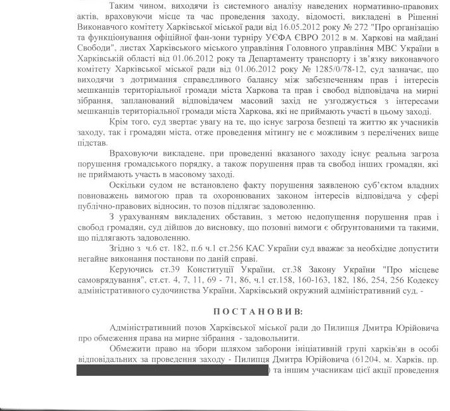 Окружний апеляційний суд Харківської області заборонив двом групам громадян проводити рознесені в часі і просторі акції на захист української мови 5 червня.