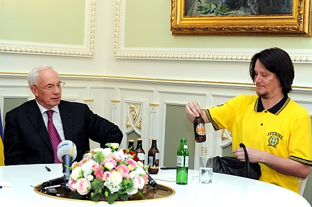 Шведський уболівальник Ола Сйостдед віддав прем'єру Миколі Азарову в Кабінеті міністрів програне ним пиво.