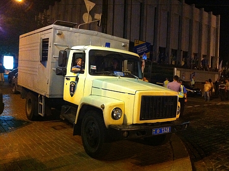 До того "Беркуту", який вже намагався відтіснити учасників мітингу, під'їхали ще три автобуси.