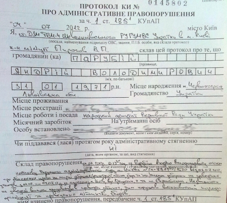 НУНСівцю вручили протокол так, ніби він підписав рішення суду