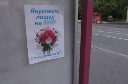 У Києві Януковича привітали плакатами з Каддафі, у Криму - нецензурщиною
