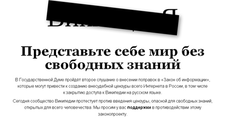 Російська версія всесвітньо відомої веб-енциклопедії Вікіпедія закрилася для користувачів, протестуючи проти розгляду Держдумою законопроекту, що обмежує свободу в Інтернеті.