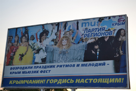 Згідно з написом на білборді, Партія регіонів ставить собі в заслугу проведення Фестивалю Пугачової Crimea Music Fest – "відродили свято ритмів і мелодій".