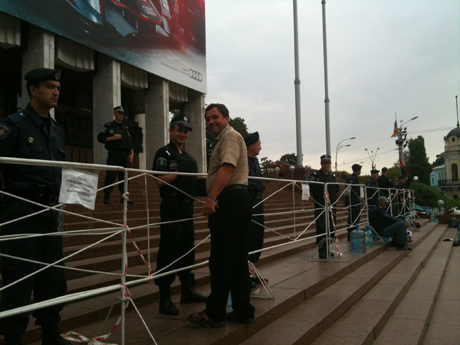 У четвер вранці, близько 6 години міліція відтіснила їх нижче по сходах, поставила огорожу та кількох правоохоронців по периметру.