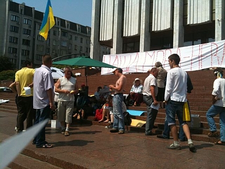 Близько 11 години ранку до мітингувальниів під Українським домом прийшли судові виконавці з постановою датованою 3 липня про обмеження проведення акцій.