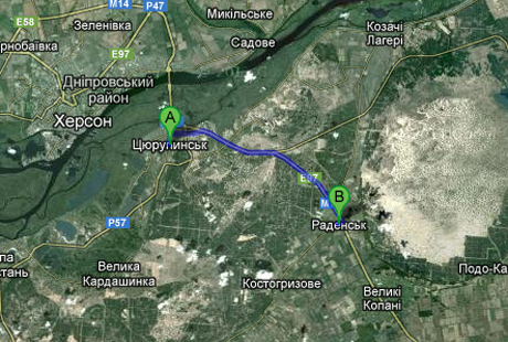 Від Цюрупинська до Раденська близько 20 кілометрів. Це одна із двох трас, якими можна потрапити до Криму.