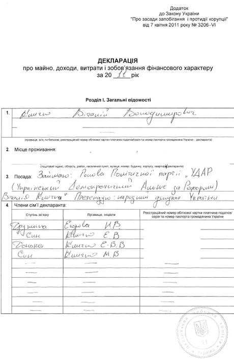 На рахунках у Кличка 82 мільйони 384 тисячі 424 гривні, які також знаходяться на рахунках за кордоном.