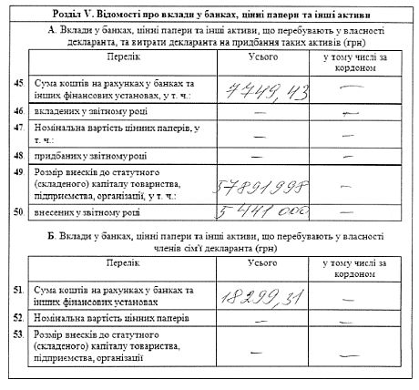 На рахунках у банках в Ірини Луценко нараховується 7 749 гривень. Розмір внесків до статутного капіталу товариства, підприємства, організації – 57 891 998 гривень (у звітному, 2011-му, році – 5 мільйонів 441 тисяча).