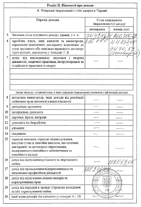 Такі дані містяться в її декларації про доходи, поданій до Центральної виборчої комісії.