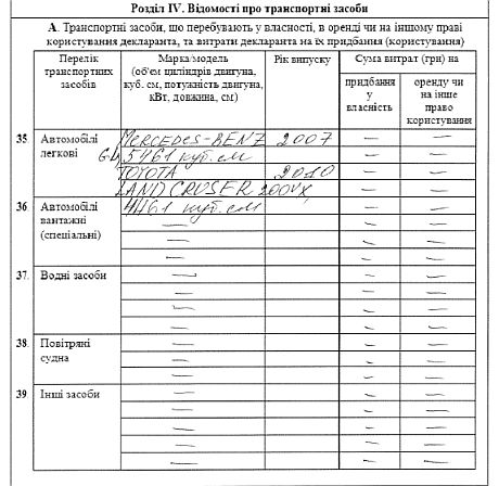 На Ірині Луценко числяться 2 легкові автомобілі - Мерседес-Бенц 2007 року випуску та Тойота Ленд Краузер 2010 року випуску.