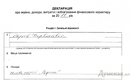 Про це повідомляє "Думская.net" з посиланням на декларацію подану кандидатом в Центральну виборчу комісію.