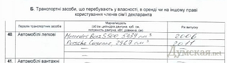 На дружину Маркова записані Мерседес S500 і Porsche Cayenne.