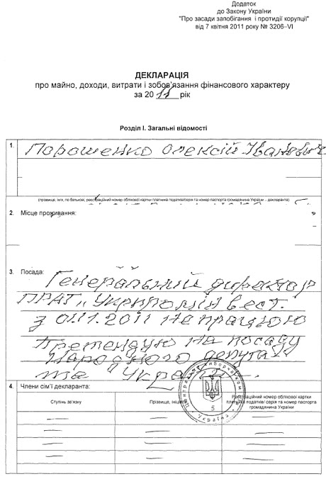 Так у 2011 році сукупний дохід Олексія Порошенка, який працює гендиректором "Укрпромінвесту" склав 1 164 744 гривень, зарплата становить 41 272 гривень.