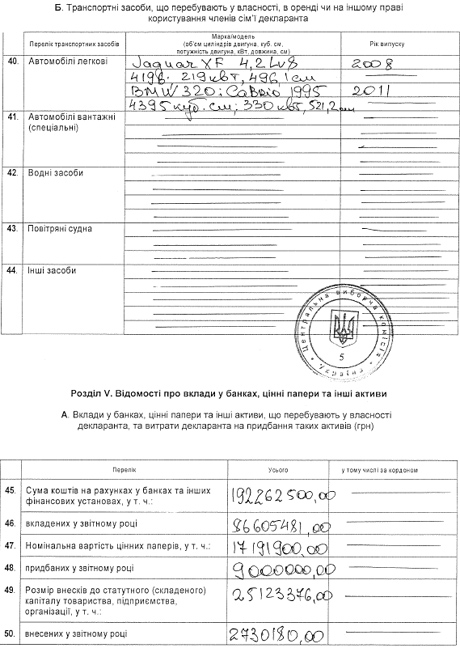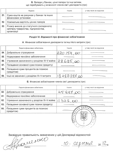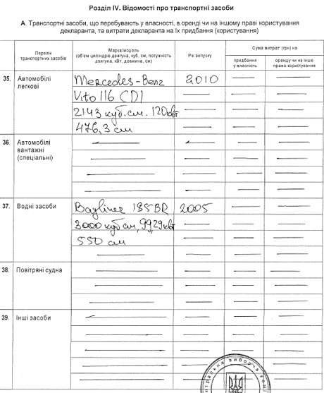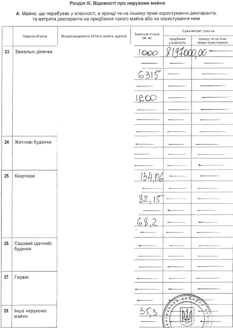Такими є дані декларації, яку він подав до Центральної виборчої комісії.